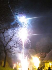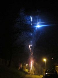 Die Silvesternacht 2014 in Hochstedt war wettertechnisch gesehen recht mild und trocken. Trotzdem donnerte es ständig, was nicht von Gewittern, sondern vielmehr naturgemäß von den vielen Böllern und Silvesterraketen herrührte, die überall im Ort gezündet wurden. Ein großes Zentrum der Silvesterfeiern war wahrscheinlich das Bürgerhaus. Rund um das Gebäude war ein ständiges Aufleuchten in allen erdenklichen Farben der unterschiedlichsten Feuerkaskaden am Boden und Lichtexplosionen am nächtlichen Himmel zu sehen. Aber auch in den Nachbarorten donnerte es und ganz deutlich trug die klare Luft den etwas gewaltigeren Donner von Erfurts Silvesterknallern zu uns herüber. Damit dürften nun auch die letzten bösen Geister des Jahres 2013 vertrieben  und der Start ins neue gelungen sein.