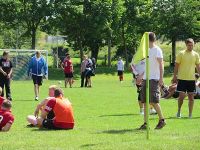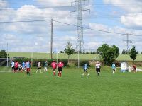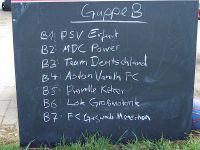 Der Sonntag stand wie immer unter dem Zeichen des Jedermann-Turniers. Bei schönem Wetter - im Gegensatz zum Vortag - hatten sich vierzehn illustre Mann- und MannFrauschaften zusammengefunden die unter den lustigsten Namen das Turnier austrugen. Am Ende siegte die Mannschaft mit dem Namen "Aston Vanilla FC" und gewann drei Fässchen Bier.