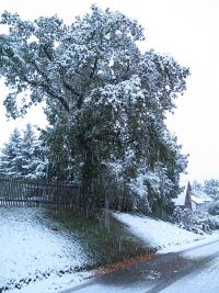 Der Winter hat sich in unserer Region Mitte Oktober schon einmal zu Wort gemeldet. Am 14. Oktober 2015 schneite es auch in Hochstedt kräftig und verursachte dabei einiges Chaos. Nicht nur die Autofahrer waren nicht darauf eingestellt, auch die Vegetation war noch nicht für solche Schneelasten bereit. Schließlich trugen die Laubbäume noch die Blätter und Blumen hatten noch längst ihre Blütenpracht nicht eingestellt. Plötzlich aber war alles mit der weißen, kalten Flockenschicht bedeckt und Äste und Blumen hingen durch. So schnell wie er gekommen war, verabschiedete sich der Winter auch wieder und hinterließ eine Tempo-Herbst-Blattfärbung, denn zum Teil waren die Blätter an den Bäumen regelrecht am Ast erfroren.