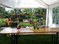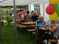 Am Nachmittag gab es jedoch erst einmal jede Menge selbst gebackenen Kuchen und Kaffee. Das Zelt füllte sich langsam, denn auch an diesem Nachmittag lief eine Fußballübertragung von der Europameisterschaft. Dieser oder jener Besucher wollte sich erst das Spiel ansehen und dann erst zum Sommerfest aufbrechen. Man feierte schließlich bis in die Nacht hinein und am anderen Morgen ging es beim Abbaufrühschoppen weiter...
