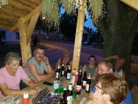 Die Minzebank, die im Juni mit dem Aufhängen von frisch geernteter Minze im Dachgebälk der Bank so getauft worden war, hatte sich in diesem heißen Sommer zu einem Treffpunkt gemausert. Kaum hatte man sich am Abend darauf nieder gelassen, kam auch schon dieser oder jener Hochstedter dazu, und das gemütliche "Bankgeschäft" konnte beginnen. Über den Köpfen hingen die getrockneten Minzebündel, während auf den Tischen diverse Getränke oder Speisen die Hauptrolle spielten.