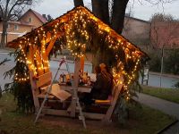 Gut geschützt vor kühlem Wind fand das Minzetreffen eine gemütliche Fortsetzung. Im Oktober gab es dann Kürbissuppe und alle freuten sich schon auf das Aussehen der Minzebank in der Weihnachtszeit. Am 24. November wurde die Bank vom Heimatverein weihnachtlich herausgeputzt und war dann am 5. Dezember für ein Glühweintreffen bereit.
