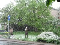 Ungewöhnlich kalte Tage bescherte eine Kaltfront arktischen Ursprungs, die Thüringen Anfang Mai überquerte. Erst vor wenigen Tagen war durch die Medien gegangen, dass der April der dreizehnte Monat in Folge war, der zu warm daher kam. Immerhin hatten wir im April bereits Temperaturen bis nahe an die 30°C. Jetzt, am 4. Mai Schneefall bis in niedrige Lagen. Auch Hochstedt wurde überpudert und auf dem Maikranz lag eine dünne Schneeschicht.