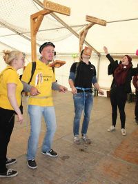 Mit dem Biergalgen zum Frühschoppen hatte jeder seinen Spaß.