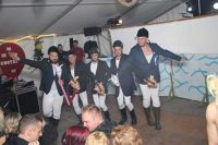 Danach kam die, den Oldies zahlenmäßig etwas unterlegene, aktuelle Kirmesgesellschaft. Dank Eric Bürger, welcher kurzfristig für die Kirmesgesellschaft noch einen neuen Kirmesstiefel zauberte, durften die Oldies aus diesem wie früher ein Schlückchen Bier genießen und die aktuellen leerten Ihre beiden Krüge.