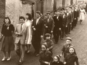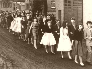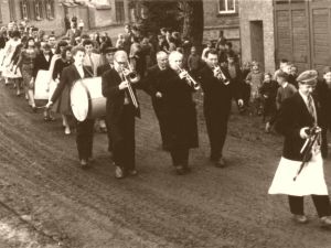 Umzug der Kirmesgesellschaft. Hier in der heutigen Sömmerdaer Straße in Richtung Vieselbach