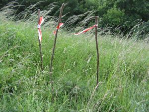 Im Juni sollte die Wiese gemäht werden und der Heimatverein wurde vor der Mahd gebeten die Stelle zu markieren damit die Distel den Rückschnitt und den Sommer übersteht.