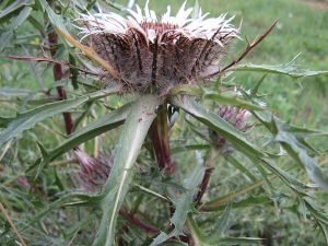 Die Silberdistel Carlina acaulis, eine eher seltene Pflanze, welche unter Naturschutz steht und bundesweit gefährdet ist, ist bei uns in Hochstedt heimisch. Die Pflanze, die zur Familie der Korbblütler Asteraceae gehört, war früher weiter verbreitet, als es heute der Fall ist. Weitere Namensbezeichnungen wie Große Eberwurz, Wetterdistel, Stengellose Eberwurz usw. sind vom Aussehen der Pflanze abgeleitet.