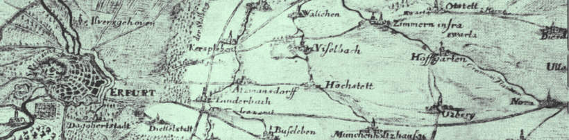 Karten: bearbeiteter Ausschnitt der Karte des Erfurter Landgebietes (Gezeichnet von Bern), nach 1706