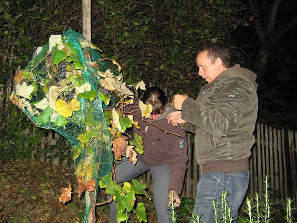 Fast einen Monat später als im letzten Jahr ging es 2008 an die Lese unserer verbliebenen Trauben an den Reben Isabella und Concord. Dabei handelte es sich um die beiden dunklen Traubensorten.