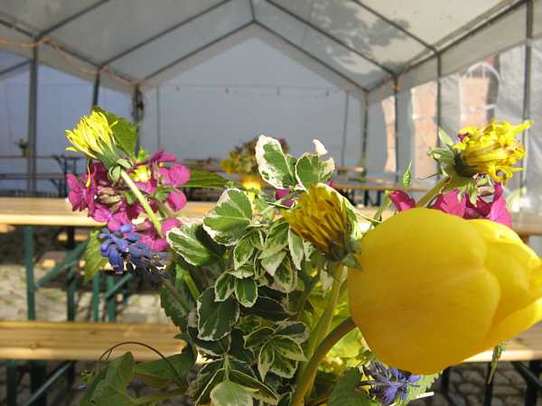 Auch die Dekoration für die Tische aus Frühlingsblumen - auch solchen von der Wiese - wurden nun in die Vasen gesteckt.