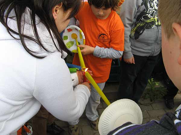 Dazu mussten natürlich erst einmal die Fackeln entzündet werden. Als Schutz vor herabtropfendem Wachs steckten die Fackeln in Pappdeckeln.
