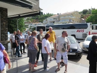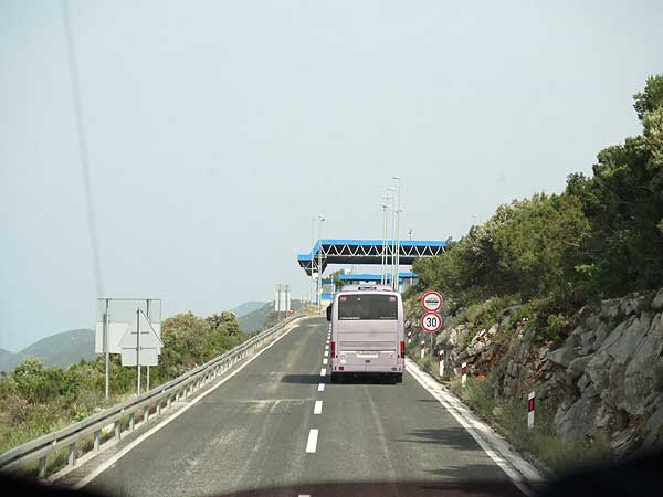 Kurz darauf standen wir an der Grenze,wie noch weitere fünf Busse vor uns. Anscheinend wurde heute kontrolliert. Wir durften jedoch an drei Bussen vorbei fahren und hatten nach sieben Minuten die erste Grenze hinter uns gelassen. Angelika kündigte in Kürze eine kleine Pause in Neum an. Wir hielten wieder an der Raststätte, an der wir auf der Hinfahrt schon Halt gemacht hatten. Diejenigen, die vor zwei Tagen keinen Lavendeltee gekauft hatten, deckten sich nun damit ein.