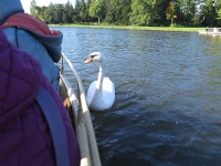 Wir fuhren an verschiedenen Sichtachsen vorüber, die der Park bot, wobei im Hintergrund immer ein anderes Gebäude zwischen den Bäumen auftauchte. Der Ruderer meinte, dass der Park mit verschiedenen Kanälen durchzogen ist, die jedoch zur Zeit nicht befahren werden konnten, da sie entschlammt würden. Dieser Umstand war überaus schade, denn über die Kanäle waren Brücken gebaut worden, wobei keine der anderen glich. Da gab es eine chinesische Brücke, eine venezianische oder auch eine Zugbrücke, die wir nun nicht sehen konnten. Nach einer fünfundvierzigminütigen Runde auf dem See vorbei an der englischen Fassade des Gothischen Hauses, anderen architektonischen Leckerbissen und herbstlicher Natur gingen wir an der Gondelstation wieder an Land.
