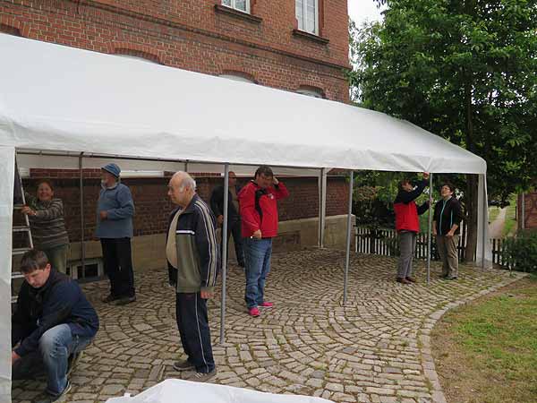 Die 10. Hochstedter Museumsnacht sollte am 30. Mai ganz im Zeichen der Landwirtschaft stehen. Daraus wurde aus technischen Gründen leider nichts und sollte bei der nächsten Museumsnacht im kommenden Jahr nachgeholt werden. Aber auch wenn kein spezielles Thema die Museumsnacht beherrscht, gibt es eine solche Nacht. In der Woche vor der Nacht, in der das Museum im Mittelpunkt stehen sollte wurden Vorbereitungen dafür getroffen. Zelte mussten im Hof des Bürgerhauses aufgestellt und auch im Museum noch dies und das gerichtet werden. Auch das Drumherum sollte stimmen, so wurden die Pflanzenkörbe vor dem Museum und das Pflaster daneben gesäubert.