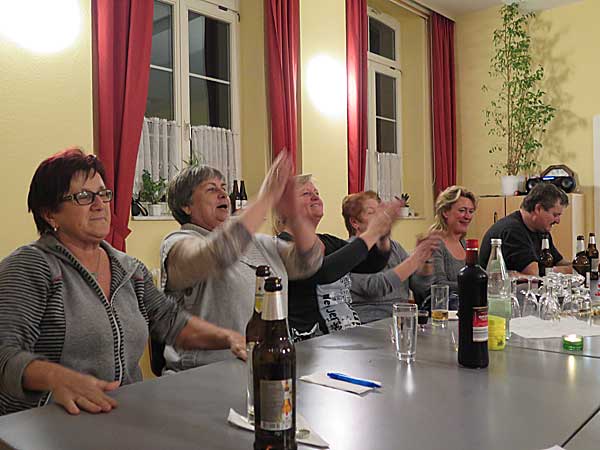 Wir hatten Salate gemacht und Brötchen eingekauft, so dass genügend Essen da war. Wir stellten die Tische im Bürgerhaus so hin, dass wir gemütlich feiern konnten und dann konnte es los gehen. Es gab genug zu erzählen, trotzdem wir uns wenige Tage zuvor schon bei der Versammlung das erste Mal in diesem Jahr gesehen hatten. Die ersten Bratwürste schmeckten hervorragend, wie auch die Salate. Selbstverständlich wurde auch getrunken, getanzt und gelacht, jedoch nicht bis die richtige Sonne aufging.