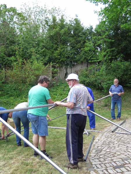 Am Tag vor der Museumsnacht wurden dann noch die Zelte aufgestellt und im Bürgerhaus der Vortrag zum Thema vorbereitet. Dazu wurden Stühle gestellt und die Technik aufgebaut.