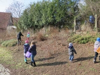 Die Sonne zeigte sich zwar, es war jedoch am Morgen des 2. April recht frisch. Aber im Gegensatz zu den Vortagen war es wenigstens nicht trüb und regnerisch. Am Bürgerhaus hatten sich schon vor 10.00 Uhr einige Hochstedter Knirpse eingefunden, die darauf warteten, dass es losging. Im Hof waren indessen die Vorbereitungen noch im Gange oder bereits abgeschlossen.