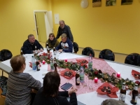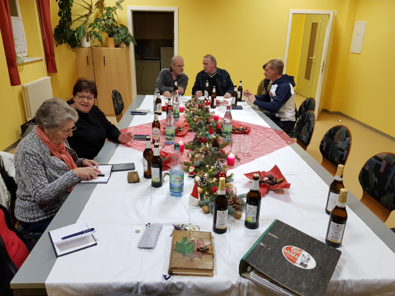 Auch im Bürgerhaus war alles weihnachtlich dekoriert, ob nun Fensternischen oder der Tisch. So konnte man sich festlich eingestimmt auf die Terminabsprache des kommenden Jahres konzentrieren. Selbstverständlich gab es dabei auch einen kleinen Rückblick auf das was in letzter Zeit im Verein passiert war, wie die erst vor einigen Tagen stattgefundene Weihnachtsfahrt oder das Aufstellen des Weihnachtsbaumes.