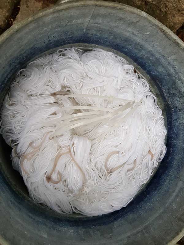 In einem anderen Topf wurde das Färbegut eingeweicht.