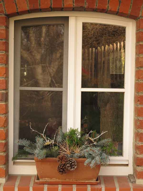 Aber nicht nur am Lindenborn wurde geschmückt. Bis zum Weihnachtsbaumaufstellen am 27. November wurden auch die Fenster des Museums herausgeputzt und auch der Kübel an der Minzebank entsprechend präpariert.