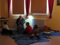 Leider hatten sich nur wenige Kinder im Bürgerhaus eingefunden, trotzdem war es ein schöner Nachmittag mit Gesang und Geschichten und Kakao mit Kuchen. Am Ende wussten die Kinder dann, warum die Giraffe einen so langen Hals hat.