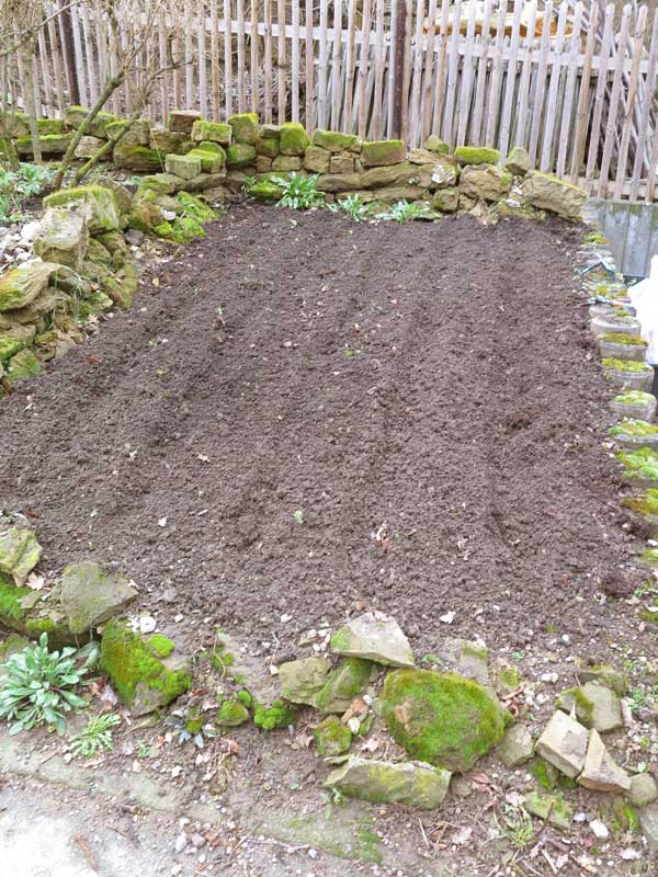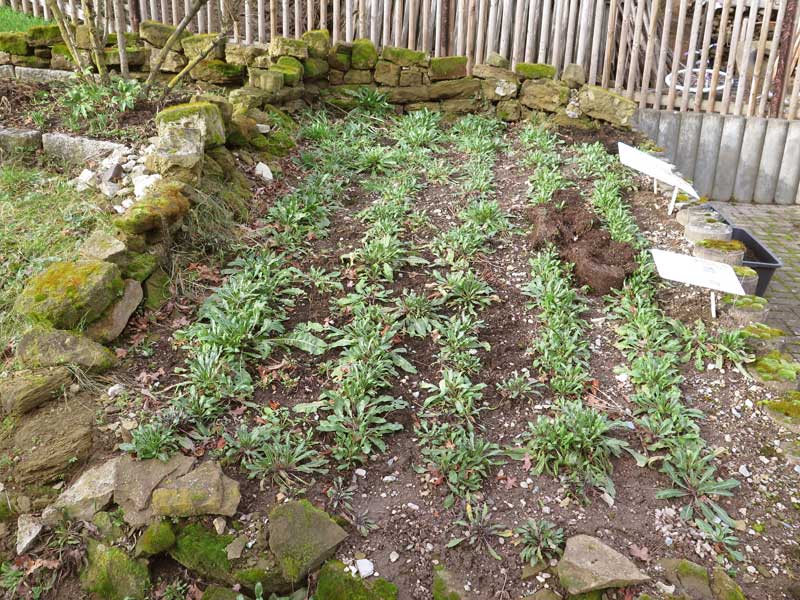 Das erste Grün zeigte sich bereits vier Wochen später, am 15.3.2024. Auch die umgepflanzten Zweijährigen waren gut angewachsen.