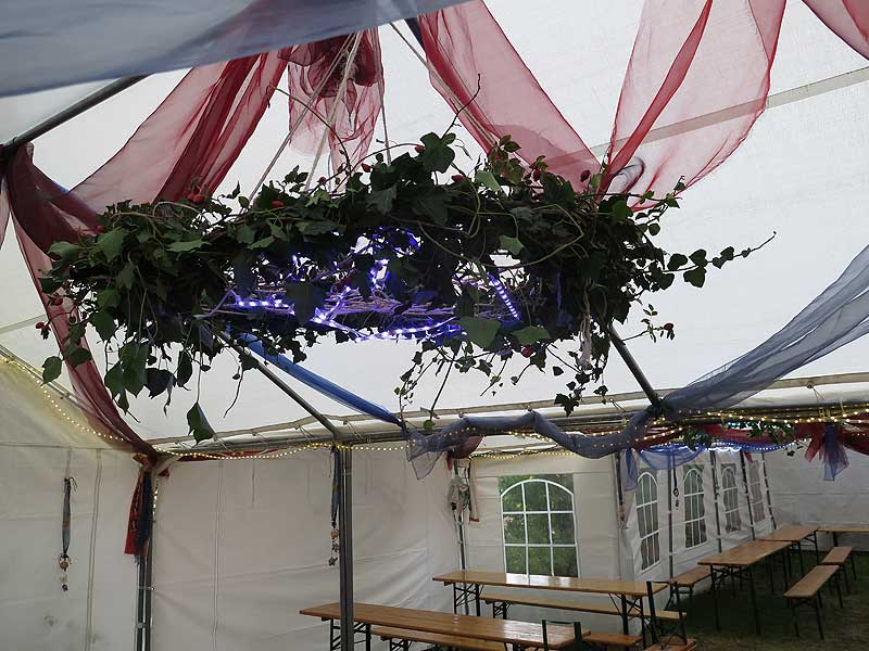 Schließlich wurden die Kronleuchter mit frischem Grün geschmückt und rundherum dekoriert.
