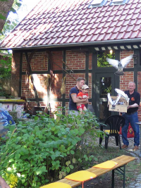 Um 14.00 Uhr begann dann das 18. Hochstedter Waidfest, welches traditionell vom Waidbauern mit der Ausruferglocke eingeläutet wurde. Im Anschluss wurden einige Tauben - auch schon traditionell - in die Freiheit entlassen.