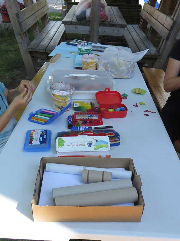 Am Donnerstag ist ein Ruhetag eingeschoben worden, weil die Vorbereitungen bereits fortgeschritten sind. Es wird jedoch ein Probefärben durchgeführt, weil die Kinder mit dem Färbegut am Waidfesttag noch kreativ sein können.