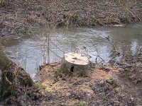 Ab diesem Zeitpunkt war der Bach eigentlich für Fußgänger oder Radfahrer nicht mehr passierbar. Die dicken Reifen der Arbeits- und Zugmaschinen hatten sich tief in den aufgeweichten Boden gefräst und die Wege im Bach grundtief zerfurcht. Ob tatsächlich nur kranken Holz entfernt wurde ist anzuzweifeln denn der Baumbestand wurde merklich reduziert.