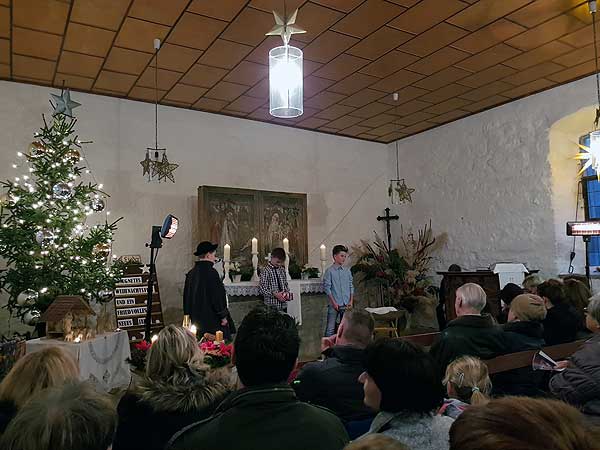 Dabei waren nicht nur die Akteure und Musikerinnen aufgeregt vor dem Auftritt, auch Katechetin Eva Kames hatte ein wenig Lampenfieber vor ihrem 1. Gottesdienst. Doch alle haben es mit Bravour gemeistert und stimmten so, traditionsgemäß auf die Weihnachtszeit ein.