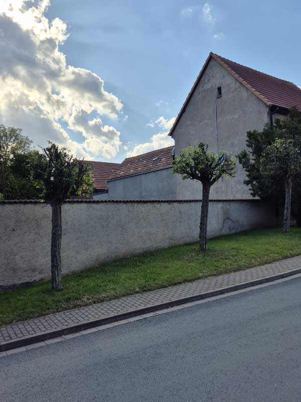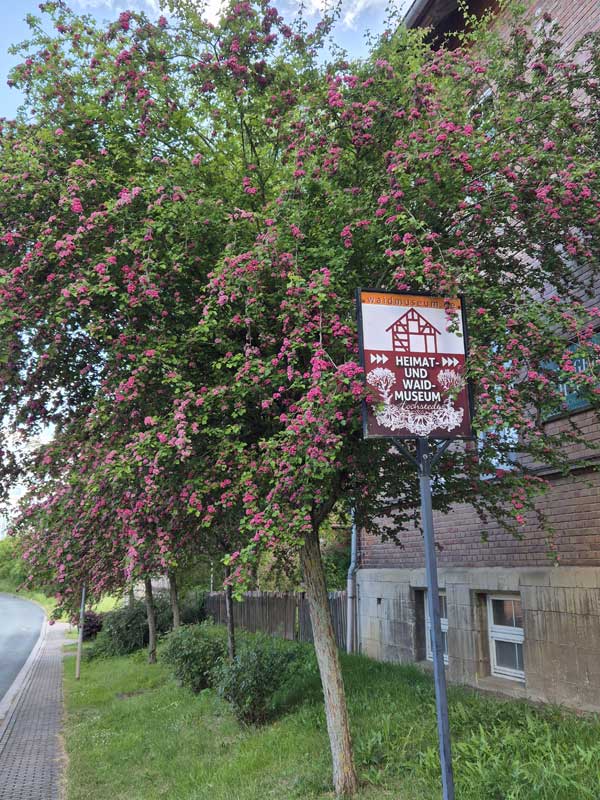 Es wurde höchste Zeit für den Rückschnitt der Rotdorn-Bäume an der Sömmerdaer Straße. Die Kronen der Bäume waren bereits so in die Breite gewachsen, dass sie an den Fassaden der Häuser kratzten, sobald der Wind ins Spiel kam denn der letzte Rückschnitt lag bereits mehrere Jahre zurück. In der Woche vom 19. bis 23. Mai 2025 wurden zumindest die Bäume des nördlichen Abschnitts der Straße zurückgeschnitten, während die des südlichen Abschnitts am Bürgerhaus noch in voller Blüte standen.