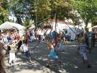 ... oder auch der Bändertanz der Kinder. Dann, am späten Nachmittag, nach dem Auftritt der Bänkelsänger, die auch in Hochstedt nicht unbekannt waren, ging es zurück nach Hochstedt und ein sonniger, schöner Nachmittag ging seinem Ende entgegen.