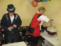 Die Startzeit des Frühschoppens war in Hockscht eine andere, wie sonst überall üblich für eine Faschingsveranstaltung: Bei uns ging es nämlich nicht 11.11 Uhr los, sondern schon um 10.10 Uhr, da es sich ja um einern Frühschoppen und nicht ein Mittags- oder Nachmittagsschoppen handeln sollte. Kurz vor Beginn wurde nochmals kräftig in der Bowle gerührt.
