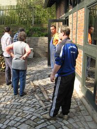 Wie sich die Bilder doch ähneln! Fensterscheibenputzen, Kehren, Wienern, Polieren, Wischen, Entstauben, Abkratzen, Schrauben, Aufhängen, Biegen, Hängen, Verschieben, Umräumen und noch viel mehr war auch zum Frühjahrsputz des Museums im Jahr 2008 angesagt.Dazu wurden auch wieder die Tücher und Besen geschwungen, und das nicht nur im Museum selbst ...