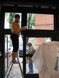 lange, denn ein Vogelpaar hatte sich wie schon im Vorjahr das Gebälk im Museum als geeigneten Nistplatz ausgesucht. Die Bautätigkeit wurde mit dem Schließen der Tür allerdings unterbrochen. Die Zeit für das Beseitigen der Nistmaterialien, die überall im oberen Stockwerk herumlagen, nahm größere Ausmaße an, besonders deshalb, weil sie über das gesamte Porzellan verstreut waren.