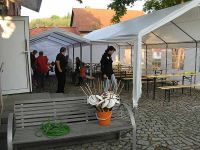 Am 30. April ging es dann richtig los und Tische und Bänke wurden aufgestellt. Ein Teil davon wurden zum Platz ohne Namen gebracht, damit sich die Zuschauer des Maibaumsetzens bequem hinsetzen konnten.