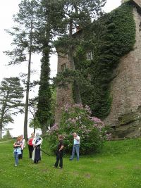 Die Fahrt dauerte nicht lange, etwa 30 Minuten, uind die Burg war schon zu sehen, wie sie hoch oben auf einem Berg über der Landschaft thronte. Der Bus fuhr bis zu einem Gasthof unterhalb des Burgberges, von welchem aus der Aufstieg (laut einem Wegweiser) beginnen sollte. Einigen Hochstedtern war die Aussicht auf einen Anstieg, nach der Herumlauferei in der Stadt und am Opfermoor etwas zu viel, umso einladender fanden sie das Gasthaus.