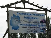 Nach der Besichtigung des Museums - die nächste Gruppe, die hinein wollte wartete bereits - gingen wir auf einem schmalen Weg etwa 500 Meter bis zu einer Linde. Diese markierte den Mittelpunkt Deutschlands und war nach der politischen Wende an dieser Stelle gepflanzt worden. Dabei gab es einen Streit der Vermesser, denn manch einer von ihnen kam bei der Vermessung Deutschlands zu einem anderen Ergebnis, dass nämlich der Mittelpunkt des Landes in einem Ortsteil von Heiligenstadt liegen würde.