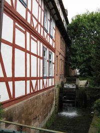 Unter uns stürzte sich die Leine über einen Abhang. Etwas weiter hinten lag der schön angelegte Kurpark, den wir aus Zeitmangel nicht mehr besichtigen konnten.