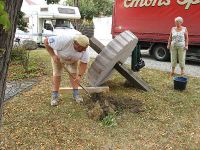 Danach ging es darum, die Vorgaben vom Garten- und Friedhofsamt von Erfurt zu erfüllen. Ein Drainageloch wurde unter der Achse ausgehoben, in welches Kies gefüllt wurde. Dieser sollte ein schnelleres Versickern des Regenwassers ermöglichen und damit Fäulnis vorbeugen.