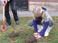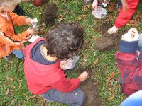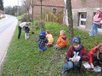 Die Bürgermeisterin, Silke Palmowski, hatte bei der traditionsreichen Gartenbaufirma N.L. Chrestensen aus Erfurt angefragt und dort für die Pflanzaktion von Frühblühern zahlreiche Blumenzwiebeln zur Verfügung gestellt bekommen. Wenige Minuten vor dem 5. Märchen- und Geschichtennachmittag, am 22. November war es dann soweit und hunderte Zwiebeln unterschiedlicher Frühjahrsblüher wurden in den Boden rund um das Bürgerhaus gebracht. Darunter waren nicht nur Krokusse, sondern auch Märzenbecher und Osterglocken. Die Knirpse waren begeistert bei der Arbeit und legten die Zwiebeln sorgfältig in die ausgehobenen Pflanzlöcher.