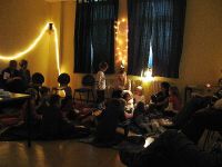 Am 22. November fand unmittelbar nach der Pflanzaktion von Frühjahrsblühern vor dem Bürgerhaus im Inneren des Gebäudes der 5. Märchen- und Geschichtennachmittag statt. Diesmal hatten sich sage und schreibe 17 Knirpse auf ihren mitgebrachten Lieblingsdecken und -kissen eingefunden um neuen Geschichten zu lauschen. Auch einige Erwachsene waren mit in das Bürgerhaus gekommen. Einige um zu helfen, andere um ihre Kinder zu begleiten und wieder andere, um selbst die Geschichten zu hören. Jedoch waren an diesem Tag die Erwachsenen in der Minderzahl, denn nur 15 waren im Raum, der zunächst in hellem Licht, dann aber kuschelig-schummrig von wenigen kleinen Lämpchen an den Wänden beleuchtet wurde.