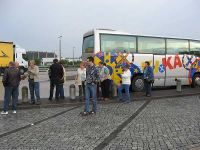 Die Hoffnung blieb jedoch, dass diese Vorhersagen nicht eintrafen. Zu oft lag auch der Deutsche Wetterdienst mal daneben, zumal es sich ja hier um Polnisches Wetter handelte. Zunächst verstärkte sich jedoch der Regen und bei Jena schüttete es schon mächtig. Es ging über das Hermsdorfer und das Schkeuditzer Kreuz bis zum Rasthof Fläming, wo ein erster Zwischenstop eingelegt wurde. Hier wurden dann schnell erste Zigaretten geraucht, die Toiletten aufgesucht oder ein Frühstück gekauft. Es gab sogar Reisende, die ihre Lektüre zu Hause vergessen hatten und sich noch ein Buch kauften. Bei der Abreise aus Polen, acht Tage später, sollte sich dann zeigen, dass keine Zeile gelesen worden war.