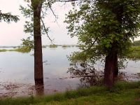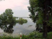 Schon bald ging die Fahrt weiter auf einer Straße, die geradewegs durch das Überschwemmungsgebiet der Warthe führte. Links vom Bus hieß es "Land unter", während die Deiche rechts dicht waren. Das Wasser der Warthe hatte etwa einen halben Meter unterhalb der Asphaltdecke seinen Höchststand erreicht und wir waren gut beraten, dieses Gebiet schnell hinter uns zu lassen. Anscheinend hatten die Behörden Grünes Licht zum kontrollierten Öffnen der Deiche gegeben, um Schlimmeres flussabwärts zu verhindern.