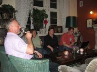 Ein allgemeines Aufstöhnen ging durch den Bus, als klar war, dass das Ziel erreicht und die Fahrt zu Ende war. Man reckte und streckte sich, während im Herrenhaus die Schlüsselübergabe vorbereitet wurde. Für einige Businsassen war es nun an der Zeit ,sich auf der Freitreppe des Hauses und der Terrasse niederzulassen, um den Nikotingehalt des Körpers wieder auf Normalstand zu bringen. Die Zimmerschlüssel waren rasch verteilt und die Koffer nach oben getragen. Es blieb wenig Zeit zum Auspacken, denn bereits um 19.00 Uhr stand das Abendessen auf dem Tisch. Zuvor gab es aber noch Gelegenheit, sich etwas im Haus umzusehen.