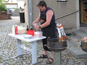 Bei Bratwürsten vom Rost und einem gekühlten Bierchen wurde über die Polenfahrt gesprochen - die Bilder gab es schon zur Ansicht -, die für die meisten Anwesenden erst einige Tage zurücklag und über den bevorstehenden Spaziergang für Jung und Alt in die Hochstedter Flur.
