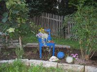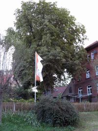 Neu war in diesem Jahr unsere Vereinsfahne, die das Fest ankündigen sollte. Zur Verwendung kam die einst auf dem "Platz ohne Namen" stehende Halterung des Maibaums, welche hinter dem Zaun des Bürgerhauses neu installiert worden war.