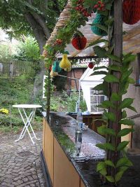 Dieses Wetter war nicht vorhergesagt worden, sondern Sonnenschein. Ärger breitete sich darüber aus, dass es ausgerechnet am Waidfesttag regnete. Die Theke war kurze Zeit später selbstverständlich gehörig nass. Zum Glück dauerte der Regenguss nicht allzu lange und es tropfte nicht länger vom Himmel. Das Waidfest konnte beginnen.